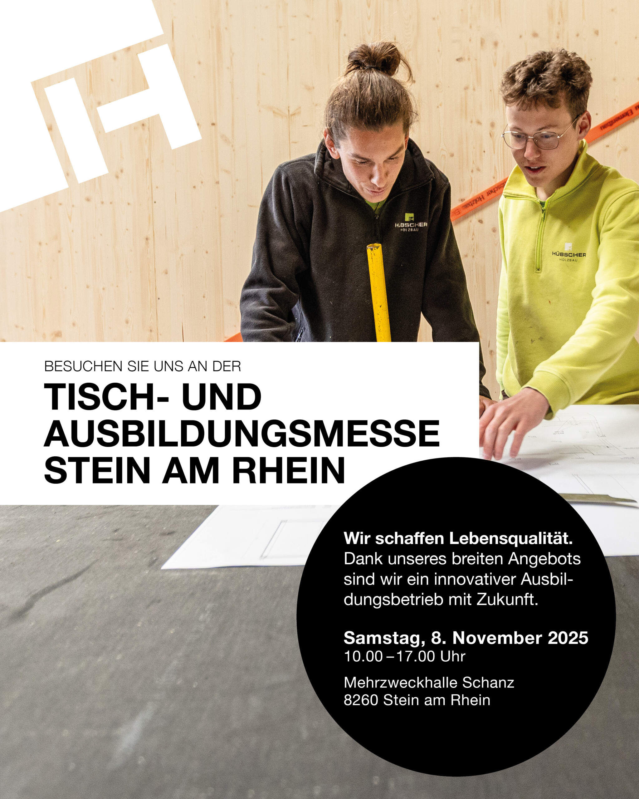 Am Samstag, 8. November 2025 sind wir von 10:00 bis 17:00 Uhr an der Tisch- und Ausbildungsmesse in Stein am Rhein vertreten und freuen uns auf Ihren Besuch!