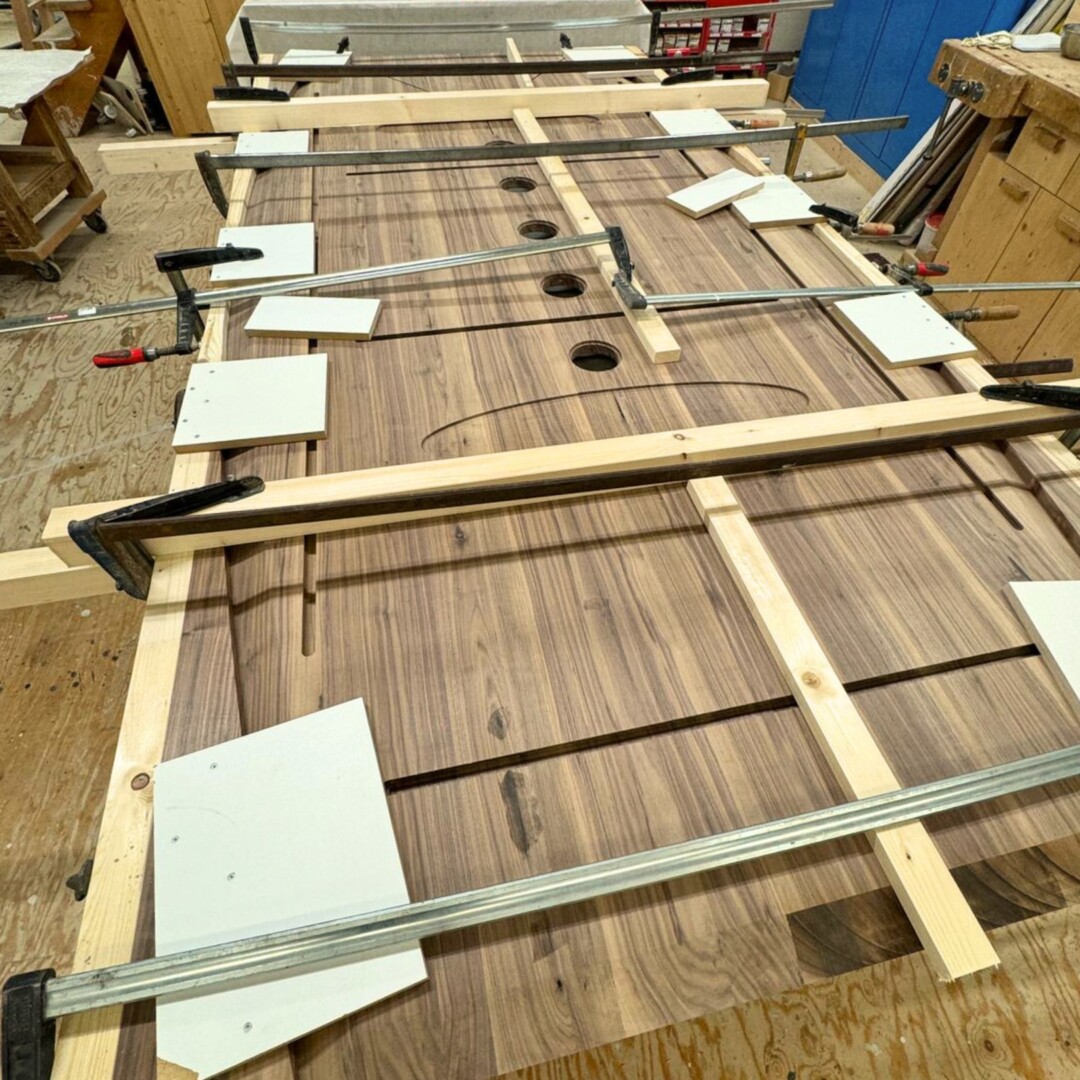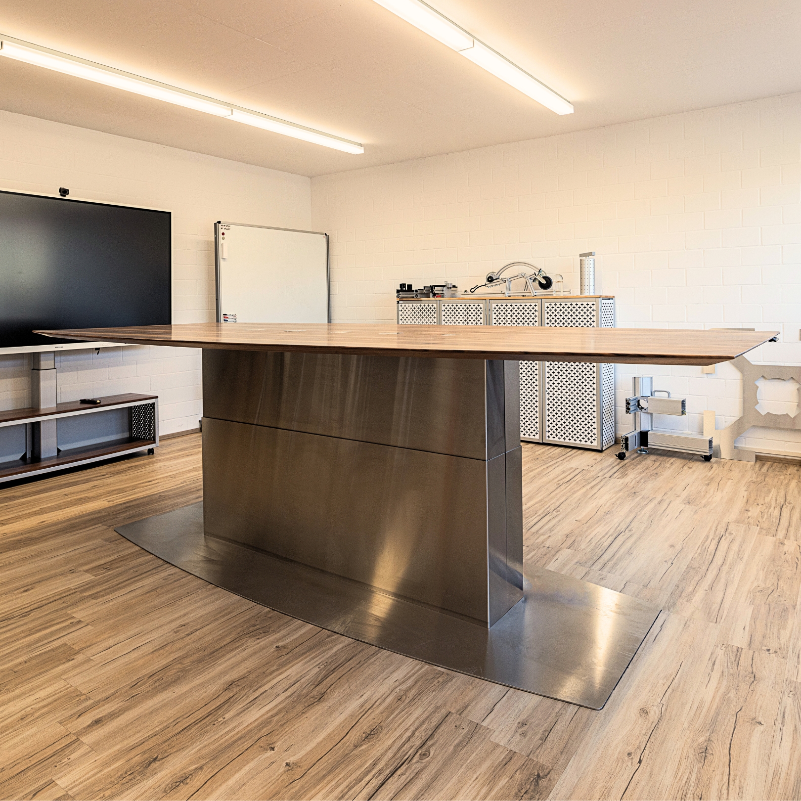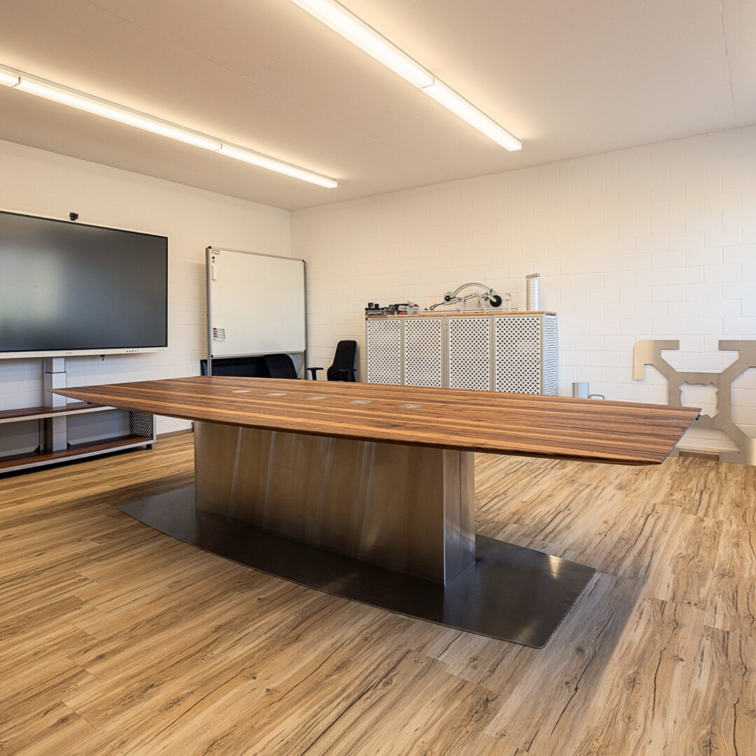 Ein Konferenztisch, der nicht nur gross, sondern auch funktional ist. 🪵