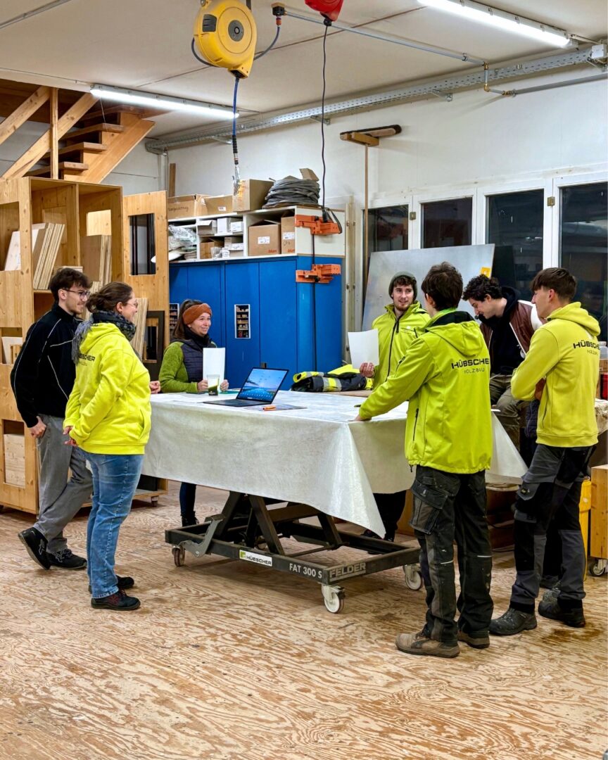 Am ersten Arbeitstag im neuen Jahr ging es bei HÜBSCHER HOLZBAU direkt motiviert los: Bereits am frühen Morgen besammelten sich alle Mitarbeitenden und starteten um 7.30 Uhr mit einem strukturierten Schulungsprogramm in den Tag. Organisiert in fünf Gruppen, wurden alle Teilnehmenden in fünf verschiedenen Themenbereichen geschult – praxisnah, effizient und in kollegialer Atmosphäre.