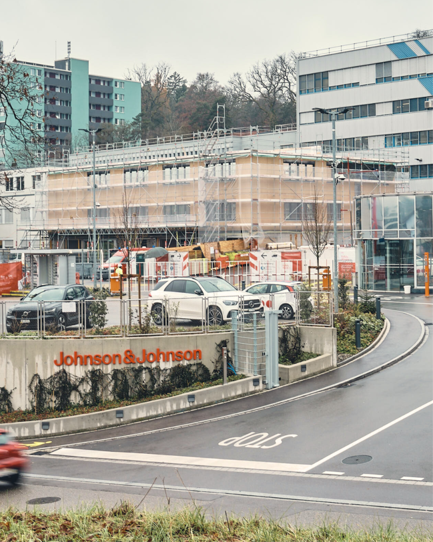 In Schaffhausen entsteht ein neues Gebäude mit Vorbildcharakter: Für Johnson & Johnson realisieren wir als Totalunternehmer ein dreigeschossiges Bürogebäude, mit der Option, es in Zukunft um noch zwei Etagen zu erweitern.
