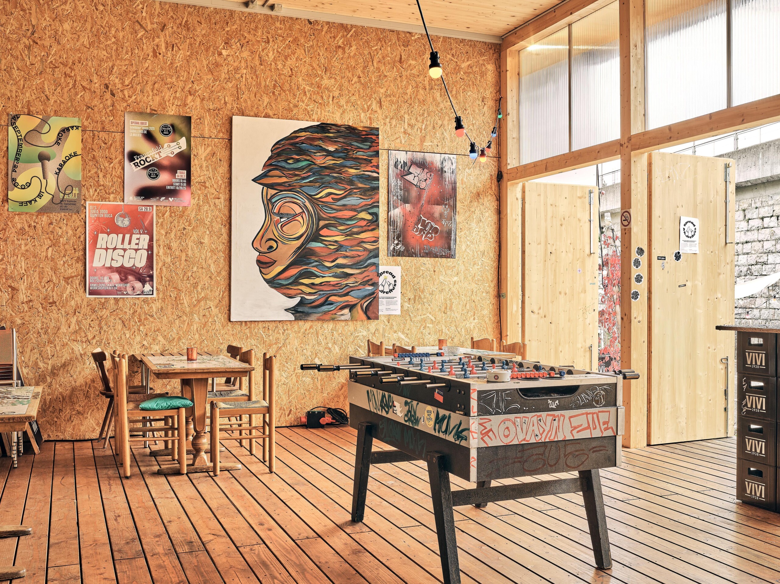 Ob Konzerte, Lesungen, Partys oder Workshops – das KAFF bietet vielfältige Nutzungsmöglichkeiten für Kultur und Begegnung. Ergänzt wird dieses Angebot durch Ateliers und Proberäume für lokale Kulturschaffende. Um die Nachbarschaft vor Lärmemissionen zu schützen, haben wir die HÜBSCHER-PUR-Wand entwickelt. Eine innovative Wandlösung, die hervorragende Schalldämmwerte mit nachhaltigen Materialen kombiniert.