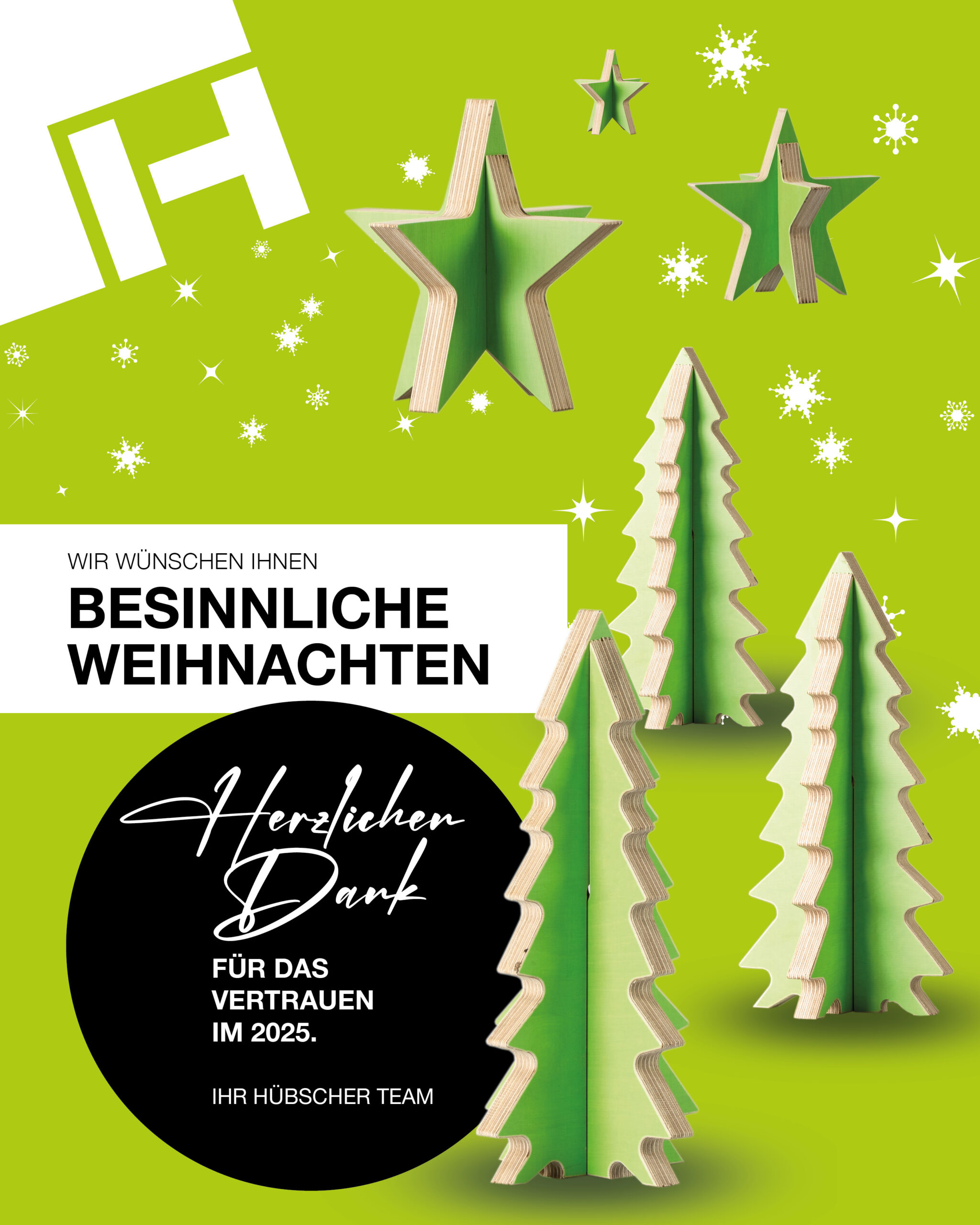 Ein herzliches Dankeschön für das entgegengebrachte Vertrauen, die gute Zusammenarbeit und die vielen gemeinsamen Projekte in diesem Jahr. Wir hoffen, dass auch Sie die Festtage nutzen können, um zur Ruhe zu kommen und schöne Momente mit Ihren Liebsten zu verbringen.
