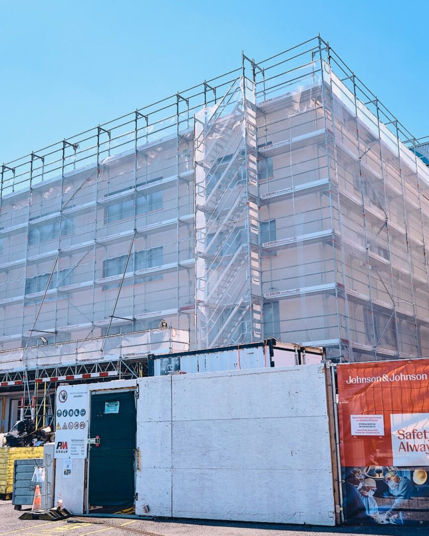 Nach nur sechs Monaten Bauzeit befindet sich unser innovatives Bürogebäude für Johnson & Johnson in Schaffhausen auf der Zielgeraden. Als Totalunternehmer realisieren wir zurzeit dieses moderne und nachhaltige Gebäude aus Holz, das in Kürze bezugsbereit ist. Das Projekt steht für effizientes Bauen, klare Prozesse und eine konsequent nachhaltige Ausrichtung. In dem dreigeschossigen Gebäude stehen zum Start bis zu 300 Arbeitsplätze zur Verfügung. Später können es auch mehr Arbeitsplätze werden, denn wir haben das Gebäude so zukunftsorientiert und flexibel konzipiert, dass eine spätere Aufstockung und Erweiterung problemlos möglich sind.