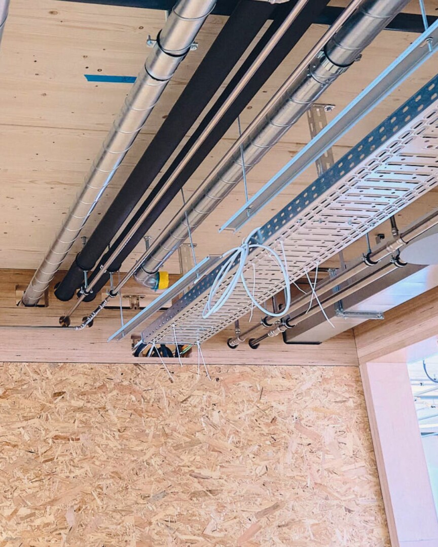 Besonderen Fokus haben wir bei HÜBSCHER HOLZBAU zusammen mit dem Bauherrn auf die ökologische Bauweise gelegt: Das Tragwerk besteht zu 100 % aus Holz aus der Region und sorgt damit für ein gesundes Raumklima sowie eine hervorragende CO₂-Bilanz. Gleichzeitig ermöglichte die hohe Vorfertigung eine aussergewöhnlich kurze Bauzeit.